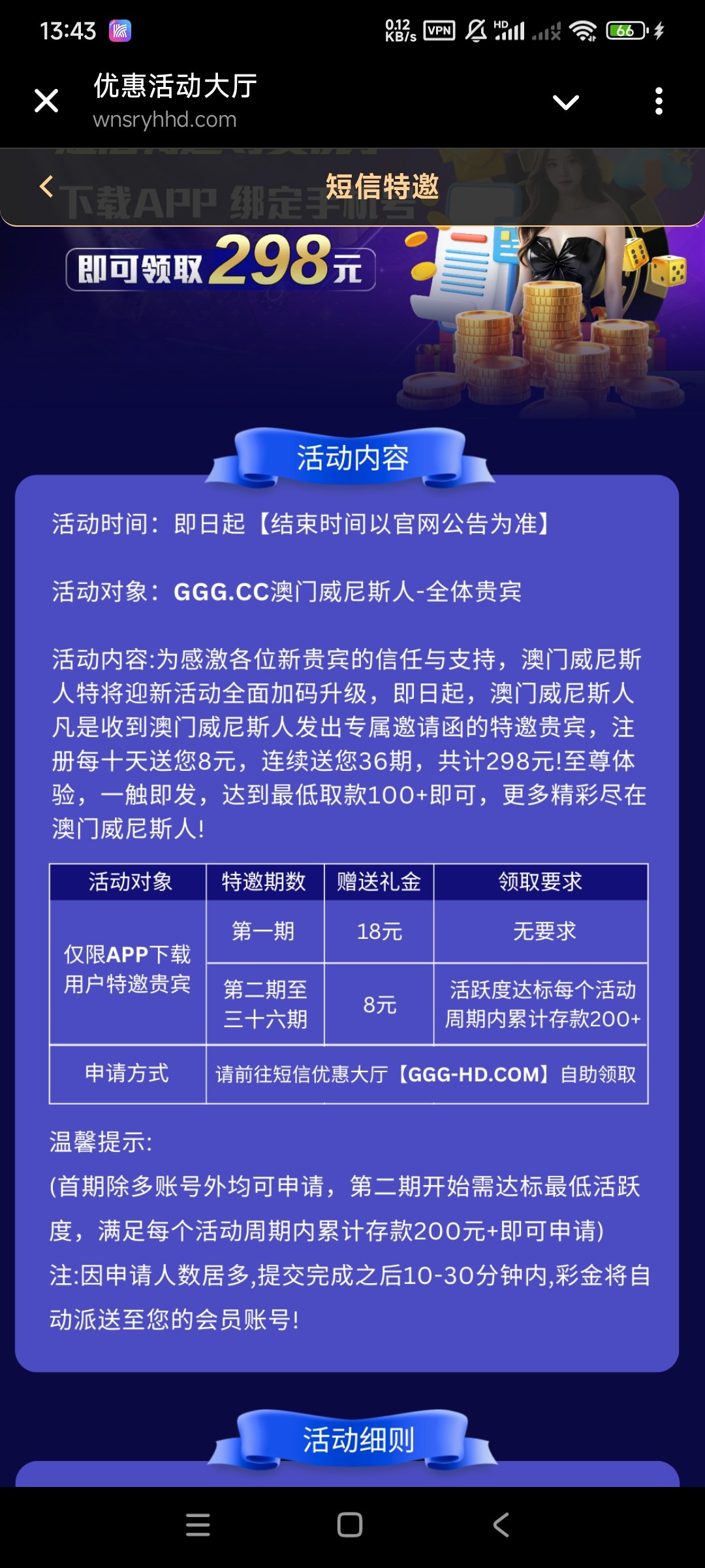 注册绑定手机号,在活动页面自行碰瓷短信特邀彩金
