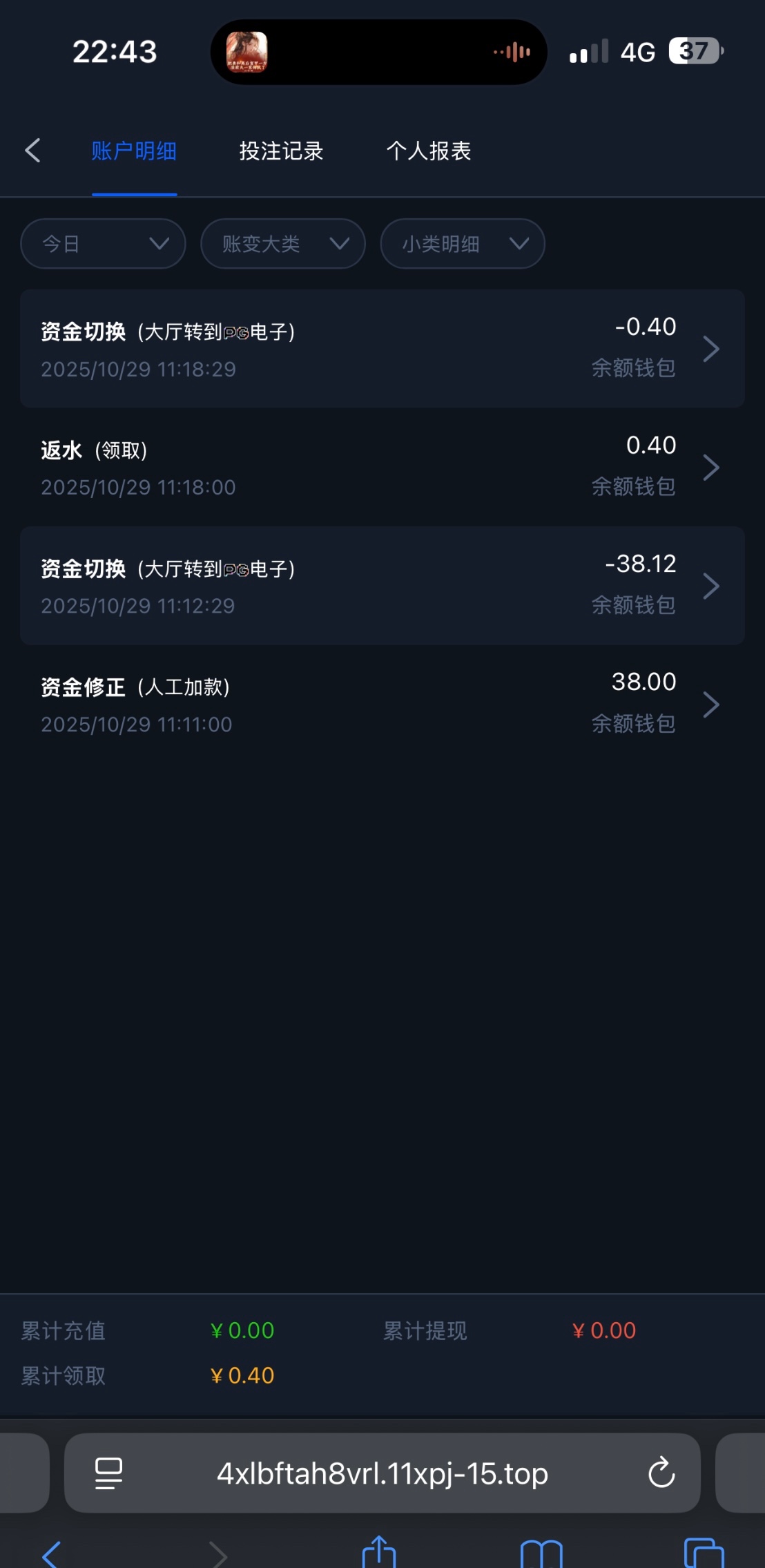 出款情况:自测(