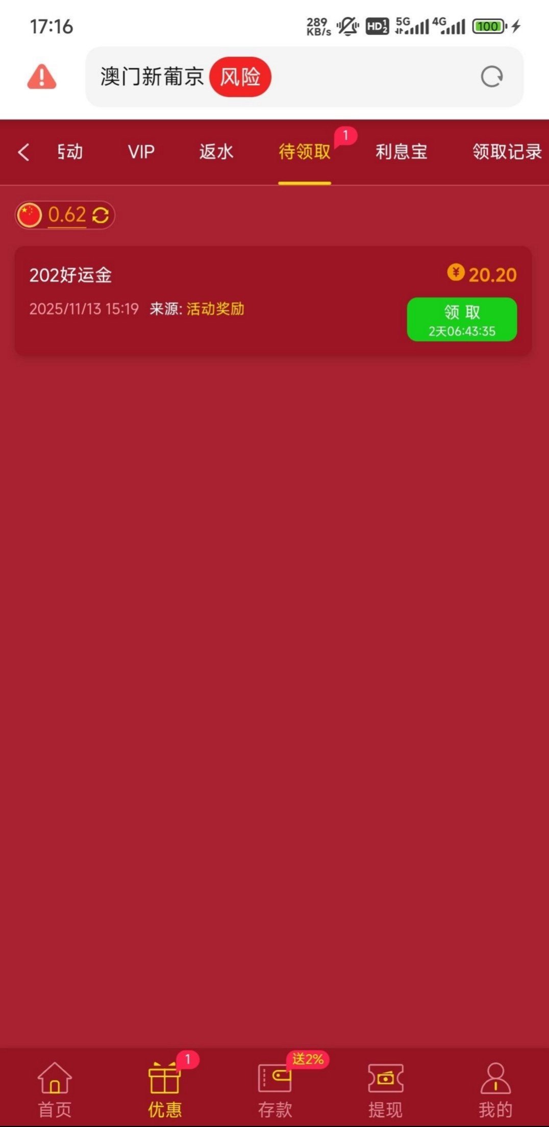新一期好运金我领了没打出来,是国内打的电话,有漏接过电话的老哥可以上去看看 202.com