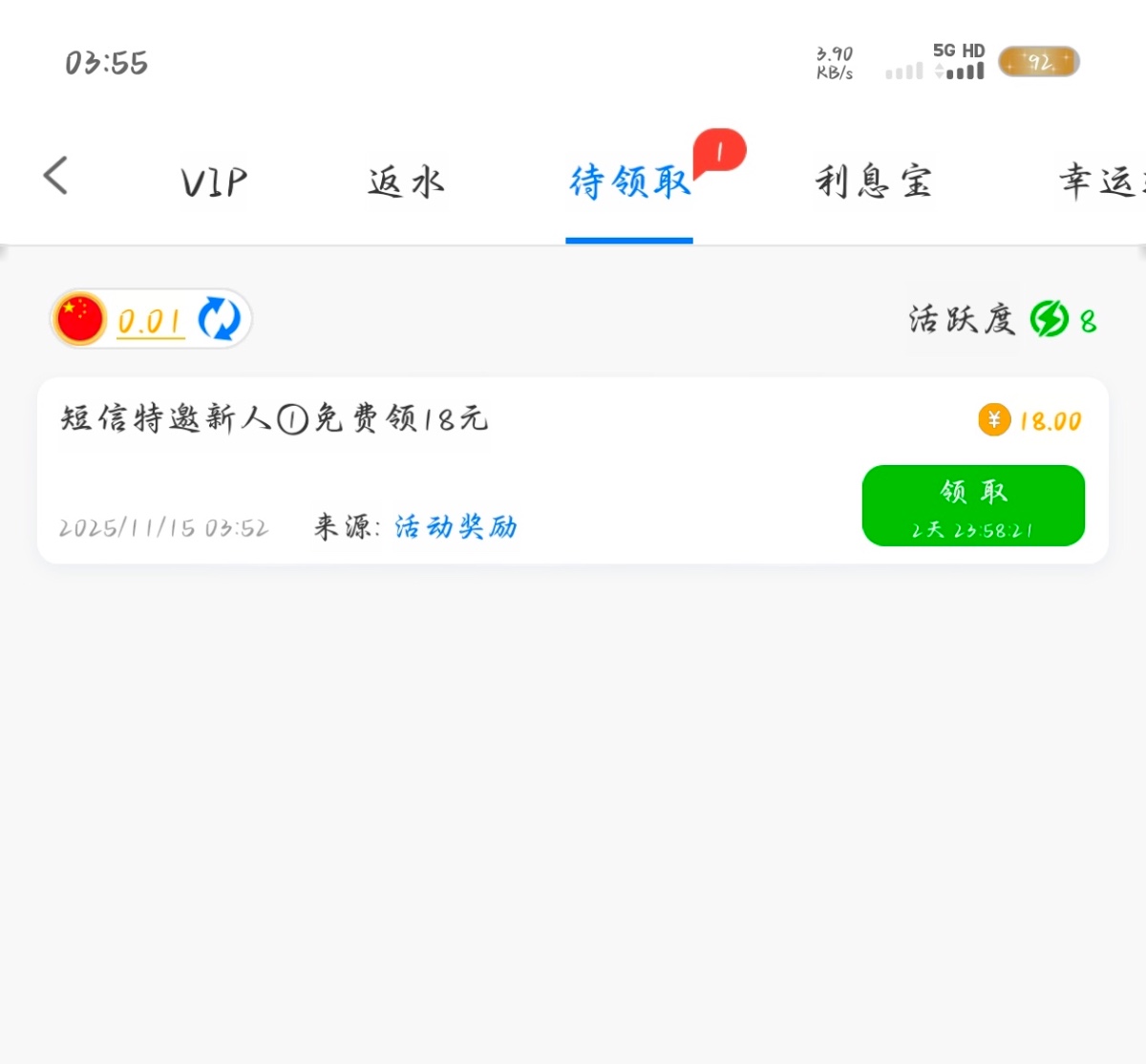 注册发短信送18 我提现了一百