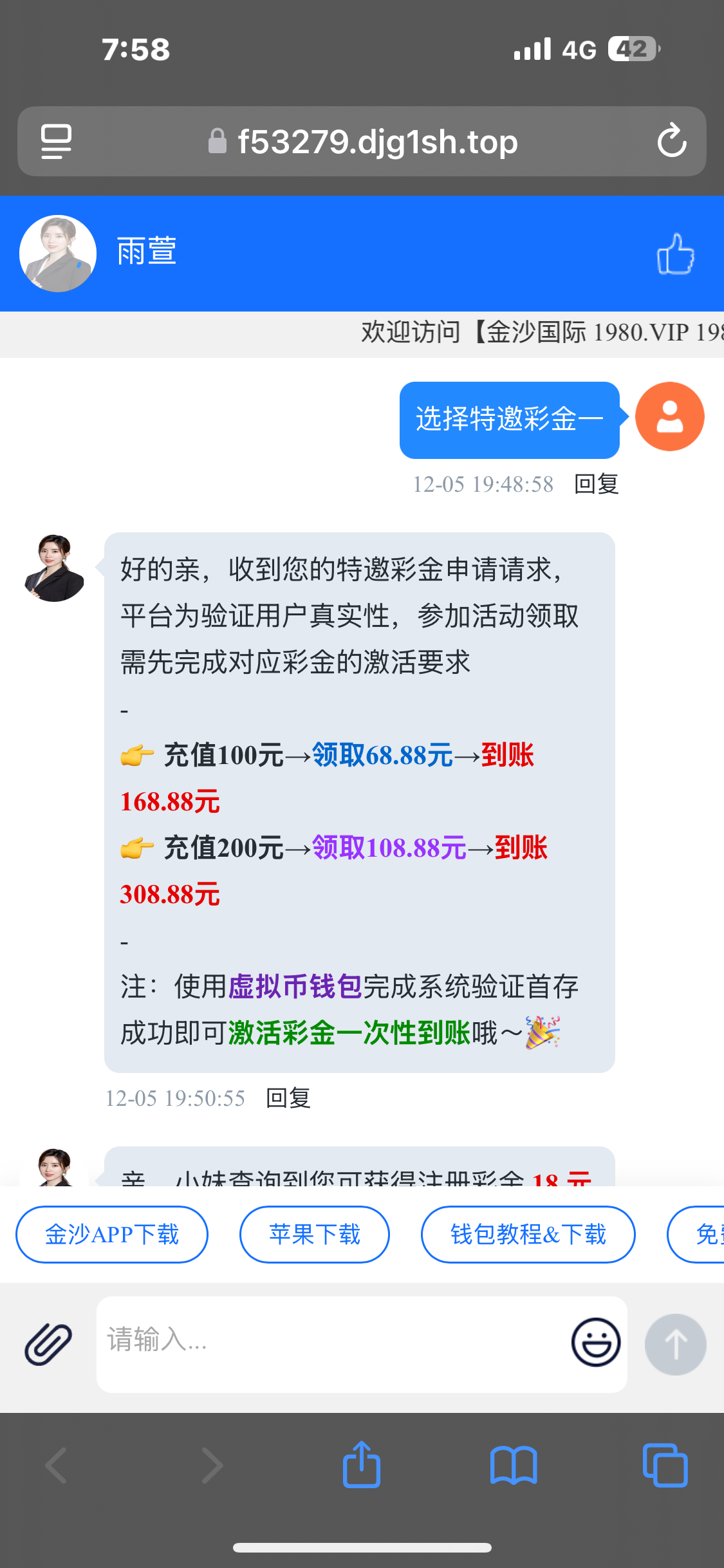 网址能告诉我下不,想去充值试试100送68也不错